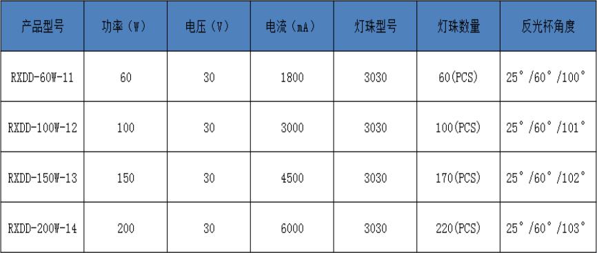 1.鱗片式反光罩 1060高純鋁反光罩,經陽極氧化和拋光處理,大大提高燈具的光利用率。鱗片式結構將光均勻反射,顯著增加燈具光的輸出效率; 2.大小尺寸反光罩 可選配25°、60°、90°、100°、110°,共6款尺寸鱗片式反光罩,有效提升光利用率; 3.4種安裝方式 安裝更便捷可選擇管裝、吊環、E40燈頭、角度支架,4種便捷安裝方式; 4.方形與圓形電源 支持方形電源和圓形電源,適用更廣泛。 5.HDT技術 高效純銅熱管直接與熱源零距離貼合,將熱管的性能發揮得淋漓盡致,傳熱速度超鋁制散熱器200倍。
