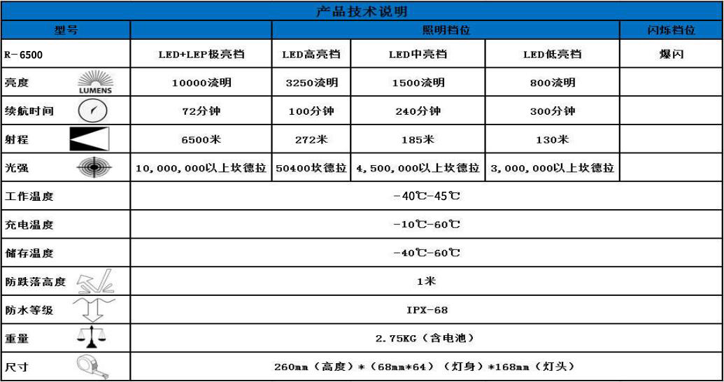 1:瞬間點亮,不存在延遲 即開即亮、無需預熱。 2:直流恒壓、恒流電路,相對HID超高壓,直流低壓工作更安全。 3:充電PD TYPE-C快充功能,并能輸出給TYPE-C手機應急充電。 4: 遠近兼顧:LED 負責近處照明,光通量1萬流明,最遠射距離529m。 遠光使用半導體特種光源光源+130MM透鏡, 最遠射距離6.5公里 。 5:外置散熱風扇,不內置方便維護。風扇在使用中泥水雜物會導致損壞出現異常,導致整體維修困難。外置風扇支架可以直接低成本更換即可。